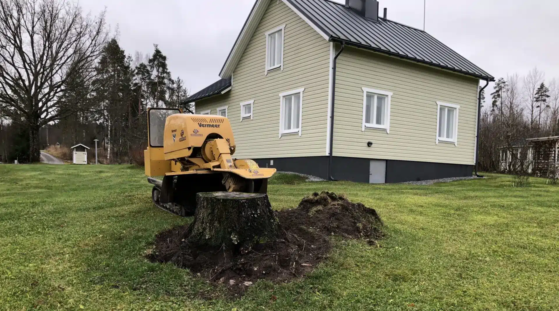 Häiritsevät kannot pois pihalta kantojyrsintä koneella.